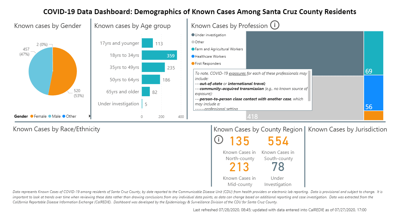 Take a look at the graphics below regarding Santa Cruz County COVID19 cases provided by County of Santa Cruz Health Services Agency: http://www.santacruzhealth.org/HSAHome/HSADivisions/PublicHealth/CommunicableDiseaseControl/CoronavirusHome.aspx
